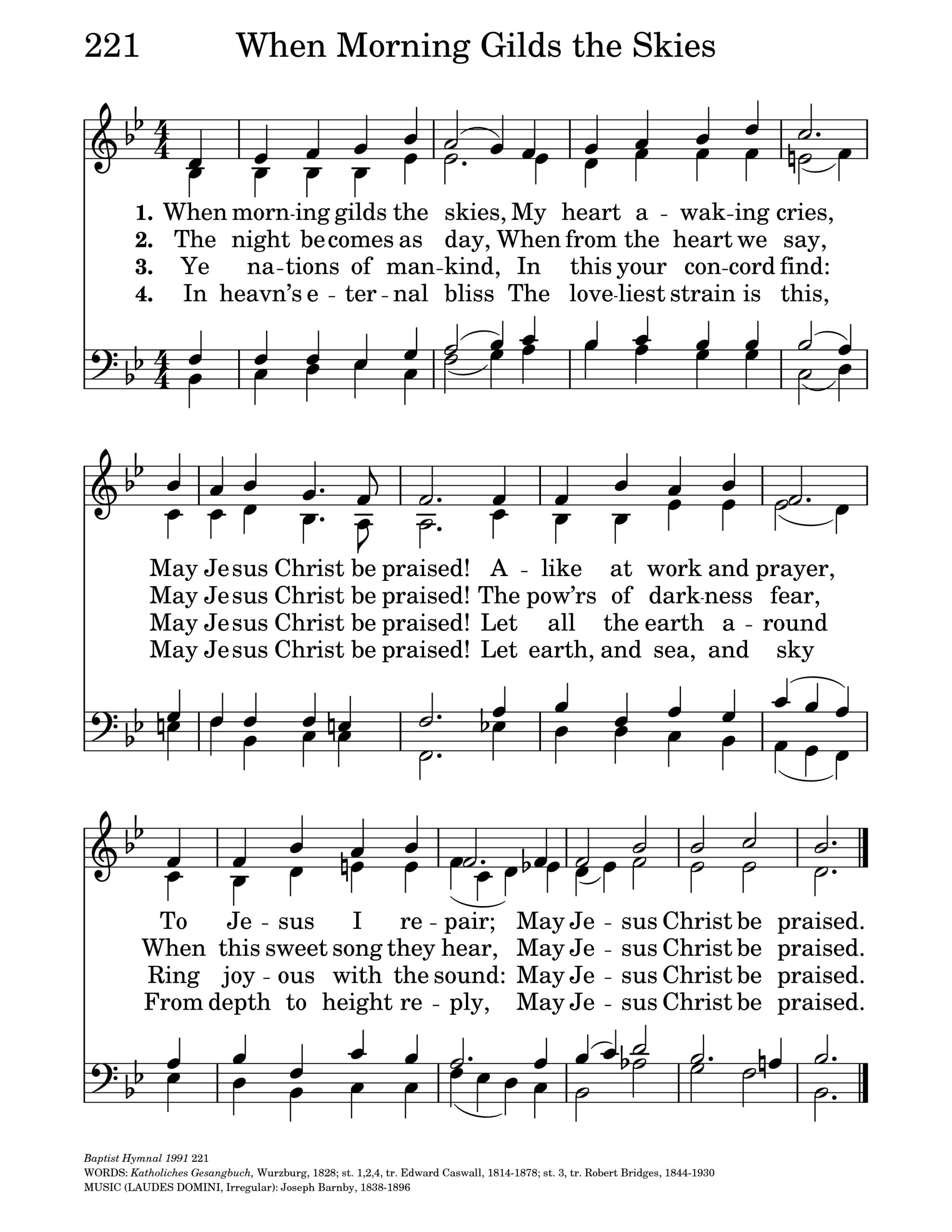 When Morning Gilds the Skies (Tune: Laudes Domini – 5vv) [with lyrics for congregations]